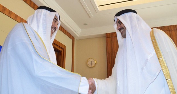 الكويت/ نبأ- سلّم مبعوث أمير الكويت الشيخ صباح الأحمد الجابر الصباح النائب الأول لرئيس مجلس الوزراء ووزير الخارجية الكويتي الشيخ صباح الخالد الحمد الصباح ووزير الدولة لشؤون مجلس الوزراء ووزير الإعلام بالوكالة الشيخ محمد العبدالله المبارك الصباح الكويت صباح اليوم الأربعاء، رسالة خطية من أمير الكويت الشيخ صباح الأحمد الجابر الصباح إلى الشيخ تميم بن حمد بن خليفة آل ثانى أمير قطر، وفق وكالة "كونا" الكويتية.