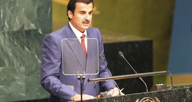 أمير قطر تميم بن حمد آل ثاني يلقي كلمة أمام الجمعية العامة للأمم المتحدة، يوم 20 سبتمبر / أيلول 2017