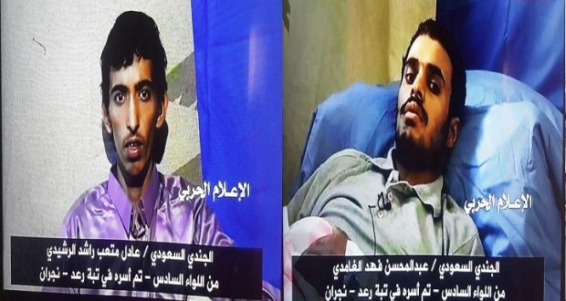 وكان الإعلام الحربي قد وزع، الأسبوع الماضي، مشاهد لأسيرين من الجنود السعوديين هما الجندي ذعار مطلق العتيبي، وهو من كتيبة المشاة العليا اللواء السادس، والرقيب الأسير عبدالله بن علي الشيلي، وهو برتبة رقيب، والذان تم أسرهما في نجران أيضاً.