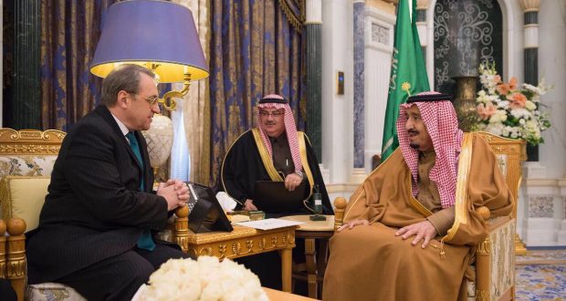 السعودية/ نبأ- التقى الملك سلمان بن عبدالعزيز، اليوم الأربعاء، في مكتبه بقصر اليمامة بالرياض، مع المبعوث الخاص لرئيس روسيا الاتحادية للشرق الأوسط والبلدان الإفريقية وكيل وزارة الخارجية الروسية ميخائيل بوجدانوف.