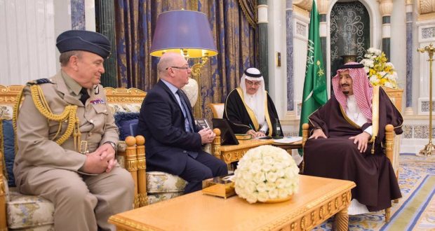 السعودية/ نبأ- استقبل الملك سلمان بن عبدالعزيز، في مكتبه بقصر اليمامة في الرياض اليوم، وزير الدولة لشؤون الشرق الأوسط وشؤون التنمية الدولية البريطاني اليستر بيرت، ورئيس أركان الدفاع البريطاني الفريق أول ستيورات بيتش.