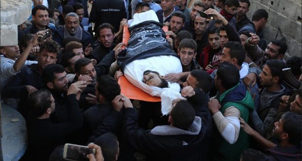 فلسطين المحتلة / وكالات ومواقع / نبأ – شيع آلاف الفلسطينيين جثامين 7 شهداء، بينهم قيادي بارز في “كتائب القسام”، الجناح العسكري لحركة “حماس”، سقطوا اثر اشتباك مع قوة خاصة من جيش الاحتلال في شرق مدينة خانيونس، في جنوب قطاع غزة، ليل الأحد 11 نوفمبر / تشرين الثاني 2018.