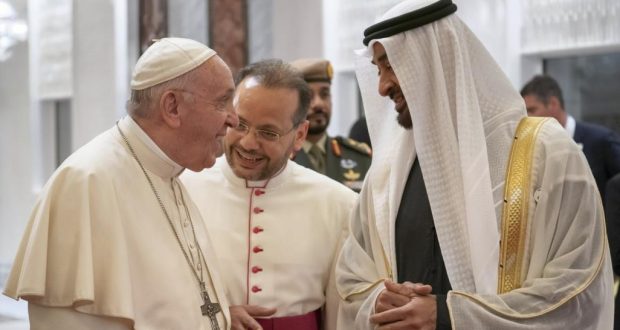 وغادر فرانسيس الإمارات، يوم الثلاثاء 5 فبراير / شباط 2019، بعد زيارة أولى من نوعها استمرت ثلاثة أيام لأول بابا للفاتيكان يزور شبه الجزيرة العربية، حيث التقى محمد بن زايد آل نهيان ولي عهد العاصمة الإماراتية، وحاكم دبي محمد بن راشد آل مكتوم وشيخ الأزهر أحمد الطيب، الذي وقّع وبابا الفاتيكان “وثيقة عالمية للسلام والتعايش بين أبناء الأديان المختلفة”، على هامش مشاركتهما في “مؤتمر الأخوّة الإنسانية” في أبو ظبي.