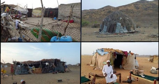 ولا يملك أهالي تلك القرى منازل تأويهم ويعيشون في عشش وأكواخ من الخشب يغطونها بالأعلاف ويسمونها "الصبل أو العريش"، فيما اعداد قليلة منهم قاموا ببناء منازل شعبية بمساعدة البعض، لكن بعضها لم يكتمل بناؤه والبعض الآخر لم تصله الكهرباء.