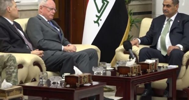 العراق / نبأ – أكد وزير الدفاع العراقي نجاح الشمري للمبعوث الأميركي الخاص بالعراق وسوريا، جيمس جيفري، أن “العراق لن يسمح باستخدام أراضيه ضد دول الجوار والمنطقة”.