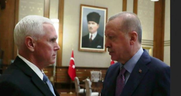 تركيا / نبأ – أعلن نائب الرئيس الأميركي مايك بنس عن الوصول إلى اتفاق مع الرئيس التركي رجب الطيب إردوغان بشأن وقف عمليته المسمّاة “نبع السلام” في شمال سوريا، والتي تهدف إلى القضاء على التنظيمات الكردية.