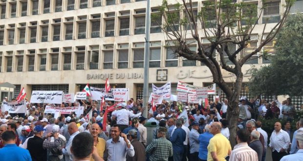 وتجمّع حشد من المتظاهرين أمام مصرف لبنان المركزي في بيروت للاحتجاج على السياسات المصرفية لحاكم مصرف لبنان رياض سلامة منذ تسعينيات القرن الماضي، والتي أدّت إلى ارتفاع الدّين العام الى حدّ 100 مليار دولار.