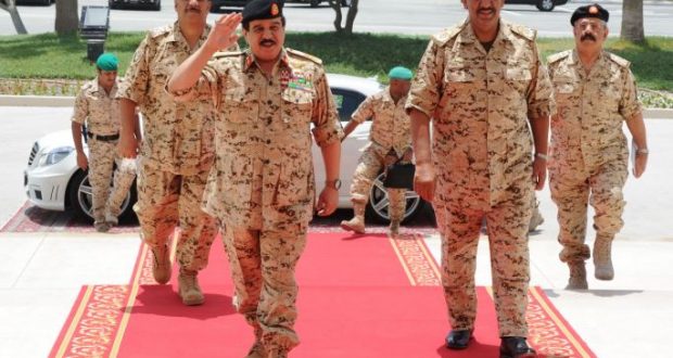 ملك البحرين حمد بن عيسى آل خليفة مع قائد "قوة دفاع البحرين" خليفة بن أحمد آل خليفة (صورة من الأرشيف)