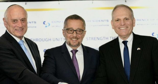 ومؤتمر رؤساء المنظمات اليهودية هي هيئة شاملة للمنظمات اليهودية في أمريكا، وقد تمّ إنشاؤه في خمسينيات القرن الماضي لتقديم صوت يهودي موحد حول قضايا السياسة الخارجية.