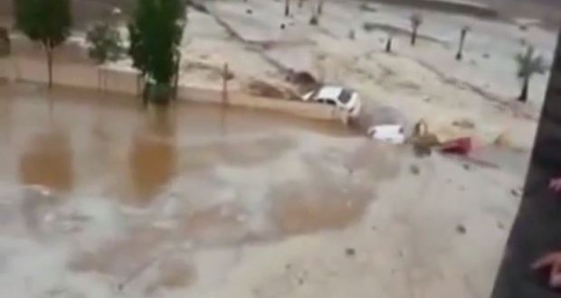 انتشر مقطع فيديو على مواقع الانترنت يظهر سيارات تجرفها السيول نتيجة الامطار الغزيرة في احد احياء مكة المكرمة في السعودية.