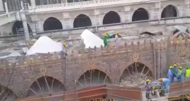 ووفقاً للفيديو فإنه يتم إزالة الأحجار حجرا حجرا ويتم المحافظة على النحت والزخرفة الموجودة في هذه الحجارة وترقيمها وتغليفها لأنه سيتم الاستعانة بنفس الحجارة في إعادتها لمكانها في التشطيب النهائي في الحرم المكي.