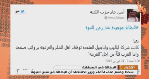 السعودية/ نبأ (خاص)- أثار تصريح وزير الإقتصاد السعودي الذي أظهر إستخفافا بمشكلة البطالة غضبا في السعودية ومطالبا بإستقالة الوزير.