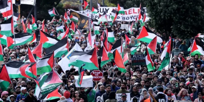 نبأ – خرج عشرات آلاف النيوزيلانديين، اليوم السبت، في مسيرة حاشدة مؤيدة لفلسطين في مدينة أوكلاند، أكبر مدن نيوزيلندا، وسط تصاعد الغضب الشعبي من العدوان الإسرائيلي المستمر على قطاع غزة.