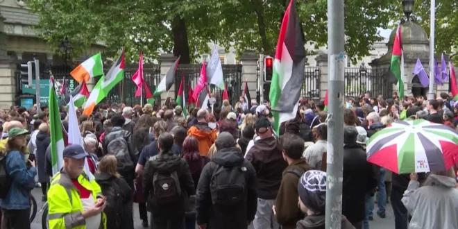 نبأ – نظم مئات الأيرلنديين، الخميس، تظاهرة حاشدة أمام البرلمان الأيرلندي تضامنا مع “أسطول الصمود” العالمي الذي اعترضته قوات الاحتلال أثناء نقله المساعدات الإنسانية إلى قطاع غزة.