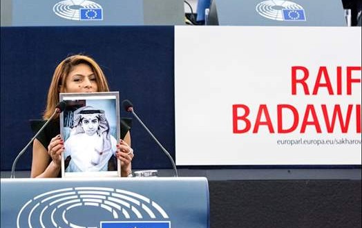 وأعلن عن منح جائزة سخاروف في 29 تشرين الاول/اكتوبر إلى رائف بدوي المسجون منذ 2012 في السعودية. وحكم على بدوي (31 عاماً) في أيار/مايو 2014 بالسجن عشر سنوات وبغرامة مليون ريال (267 الف دولار) وألف جلدة موزعة على 20 أسبوعاً بتهمة الاساءة للاسلام.