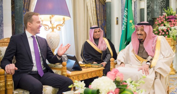 السعودية/ نبأ- استقبل الملك سلمان بن عبدالعزيز، في مكتبه بقصر اليمامة في الرياض اليوم الخميس، وزير خارجية مملكة النرويج بورغ برنده.